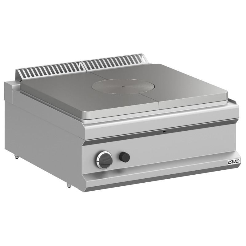 La Plancha Radiante a Gas MTPG77T de la serie Magistra Plus 700 es el equipo definitivo para los chefs que buscan un control térmico tradicional y preciso. Con una superficie de cocción de 40 dm², esta unidad de sobremesa permite trabajar con diferentes intensidades de calor en una misma placa, siendo ideal para salsas, cocciones lentas y mantenimientos de temperatura.