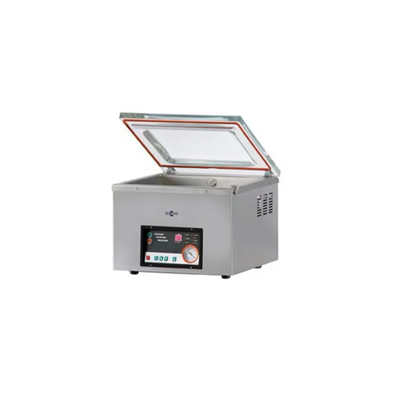 Gracias a su barra de soldadura de 440 mm y a una cámara de gran profundidad, permite el envasado tanto de productos en lonchas como de piezas voluminosas, mejorando la conservación, higiene y organización del alimento.
