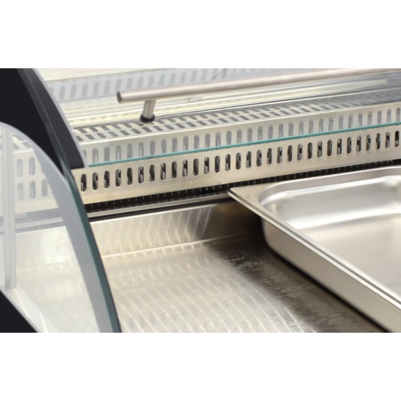 Doble Función (Asistida y Autoservicio): Innovador sistema de cristal frontal corredero y puertas traseras extraíbles, permitiendo su uso tanto tras el mostrador como en zonas de buffet o autoservicio.