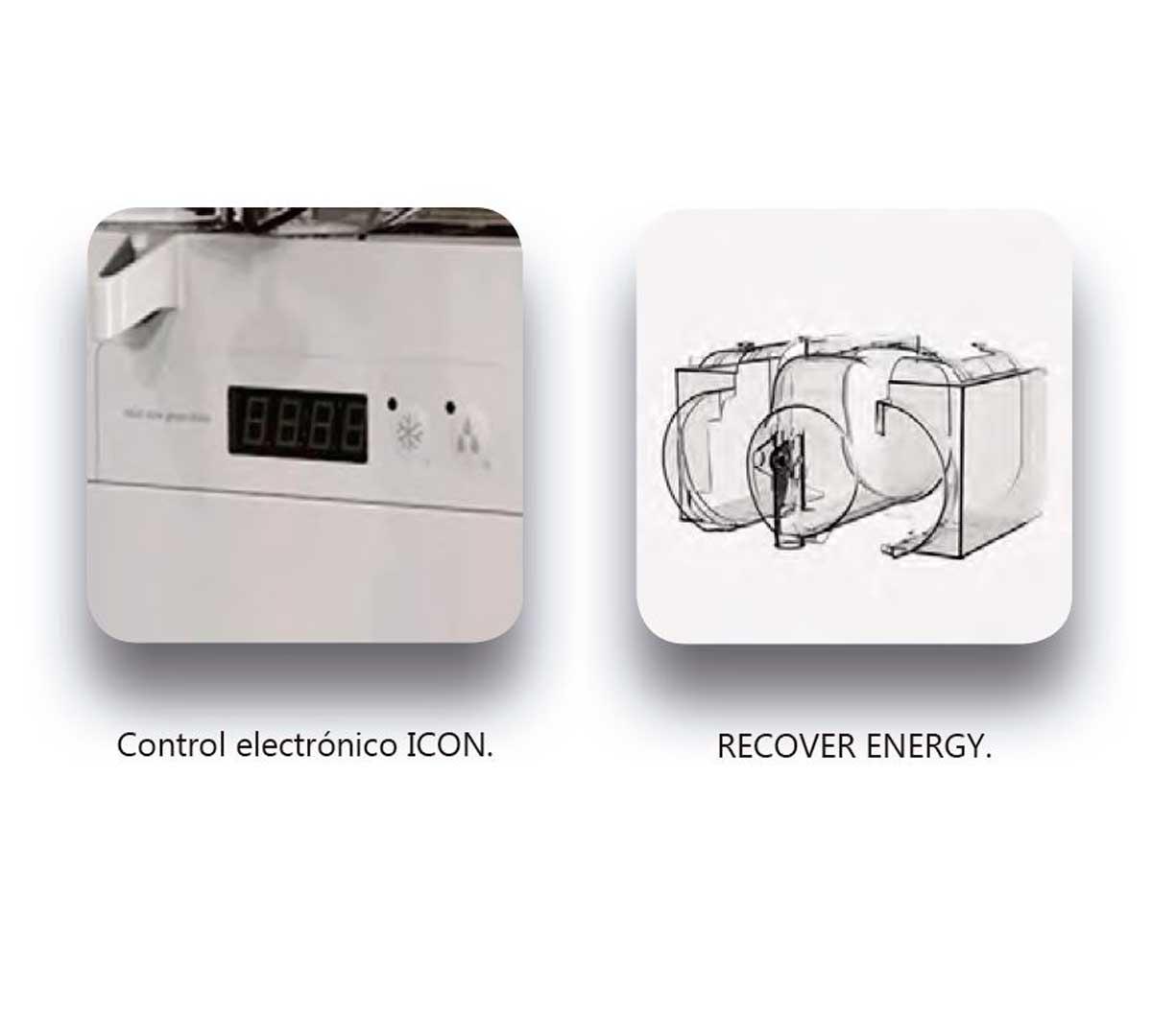 Su estructura robusta, el compresor hermético, la bandeja recoge-gotas extraíble y los componentes desmontables garantizan durabilidad, higiene y facilidad de mantenimiento. Incluye de serie el sistema Recover Energy para una mayor eficiencia energética.