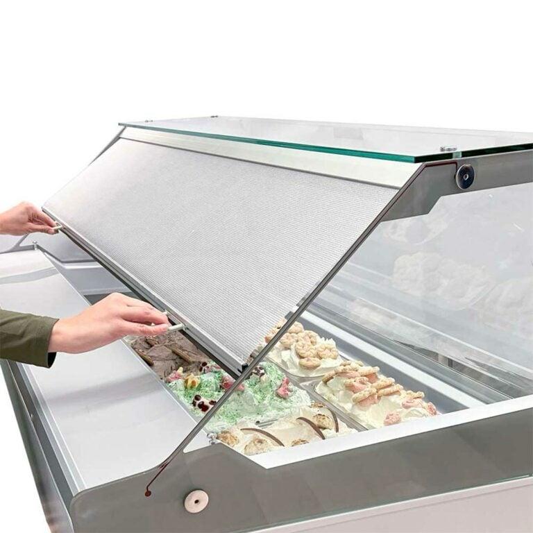 Su estructura permite una exposición atractiva del helado, facilitando el servicio y el mantenimiento diario.